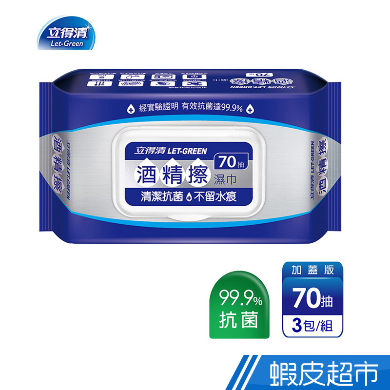 立得清 酒精擦濕紙巾 70抽清潔抗菌 擦拭無水痕 食品級酒精 3包/15包 蝦皮直送 現貨