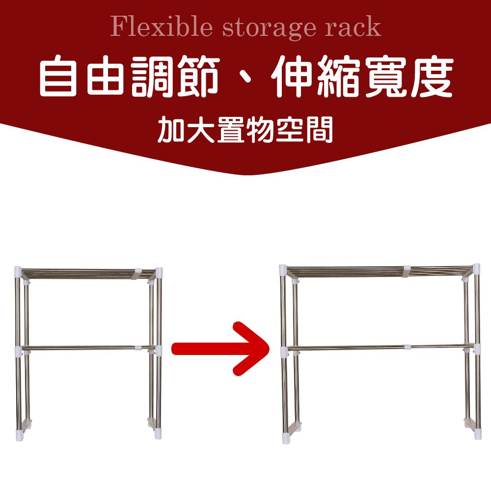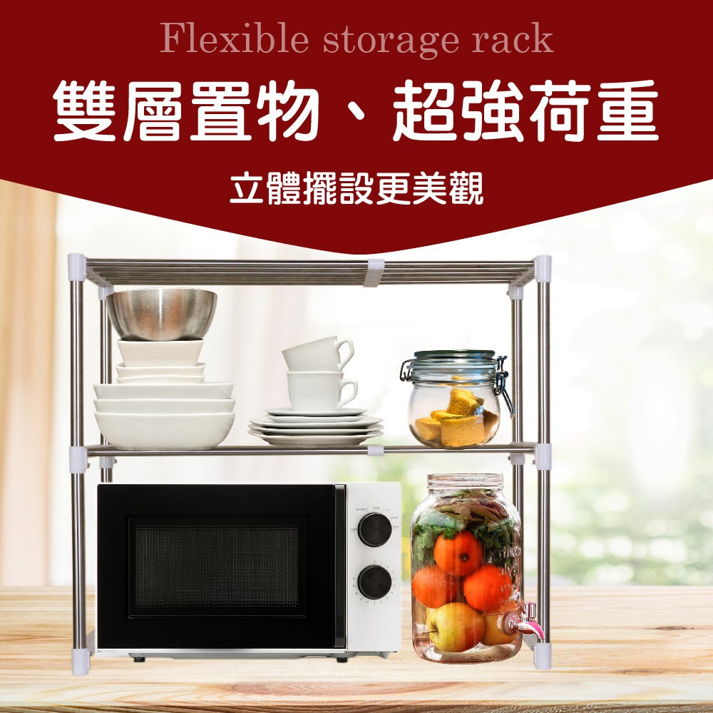 雙手萬能 不鏽鋼伸縮雙層微波爐架 置物架 烤箱架 收納架 廚房用 收納 免運費 廠商直送