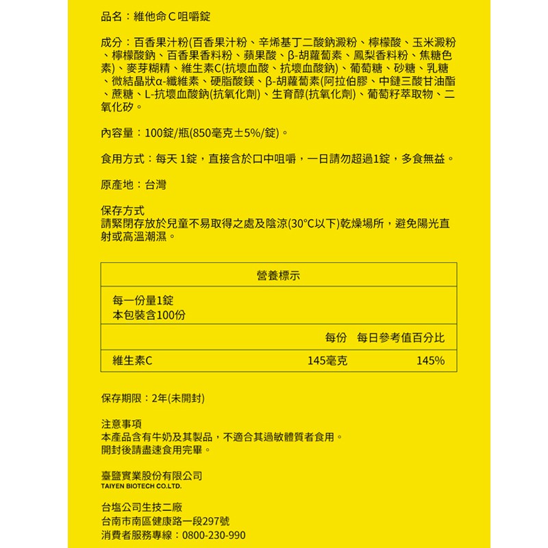 台鹽生技 維他命C咀嚼錠-百香果口味 任選三瓶組/五瓶組 100錠/瓶 廠商直送
