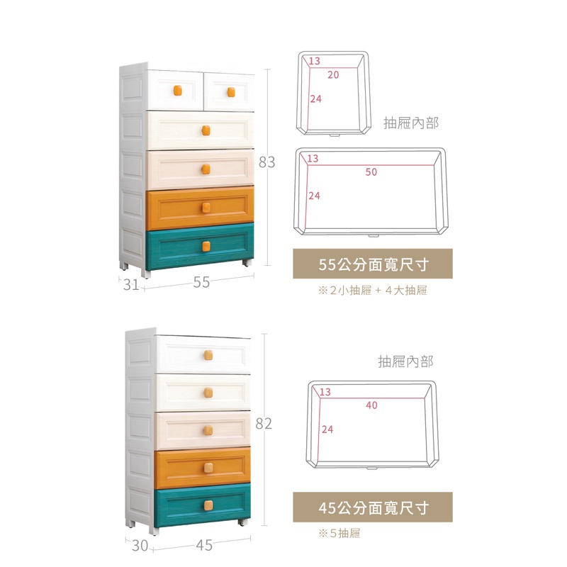 慢慢家居 45面寬 55面寬 北歐仿木紋五層抽屜收納櫃 收納櫃 抽屜櫃 收納 免運費 廠商直送