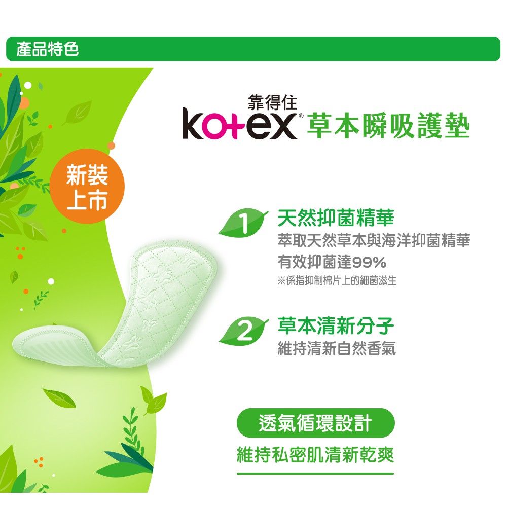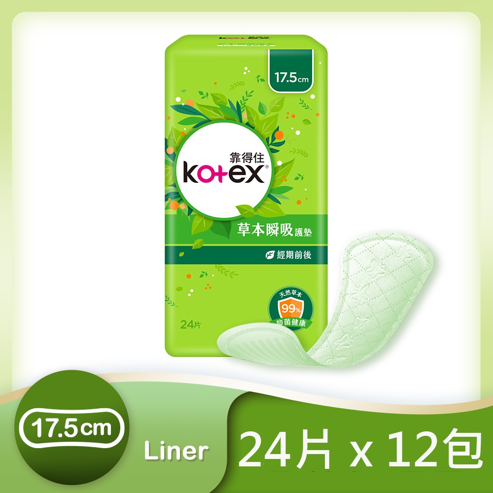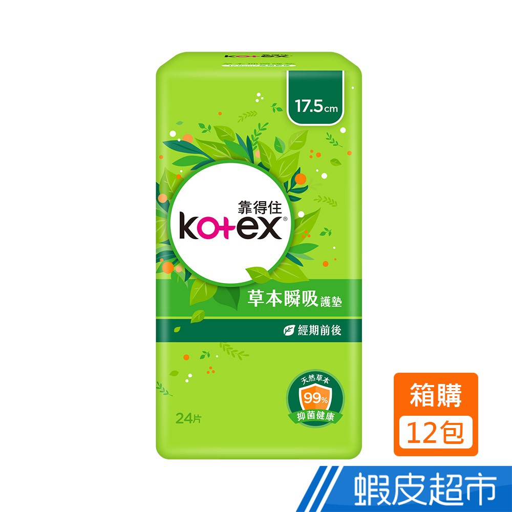 Kotex靠得住 草本瞬吸護墊17.5cm 草本清新 24片X12包(小箱購) 蝦皮直送 現貨