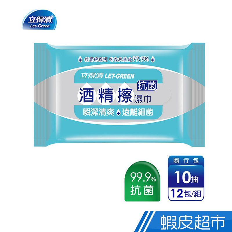 立得清 酒精擦濕紙巾 清潔抗菌 擦拭無水痕-隨行包10抽x12包 蝦皮直送 現貨
