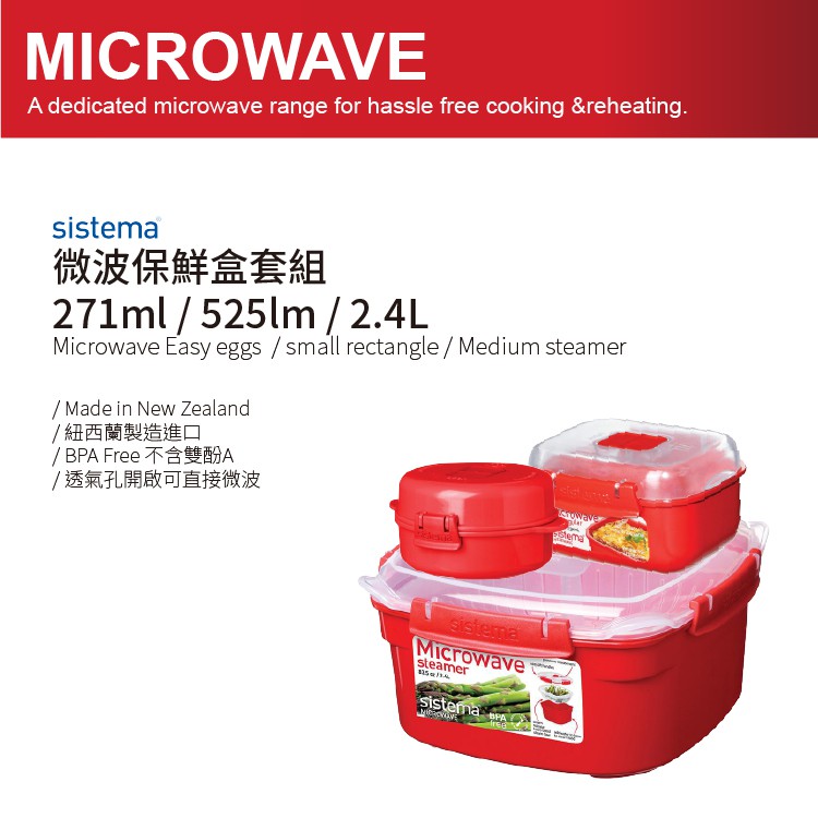 sistema 紐西蘭進口 微波蒸煮保鮮盒 經典超值3件組 (2.4L+525+271ml) 現貨 廠商直送