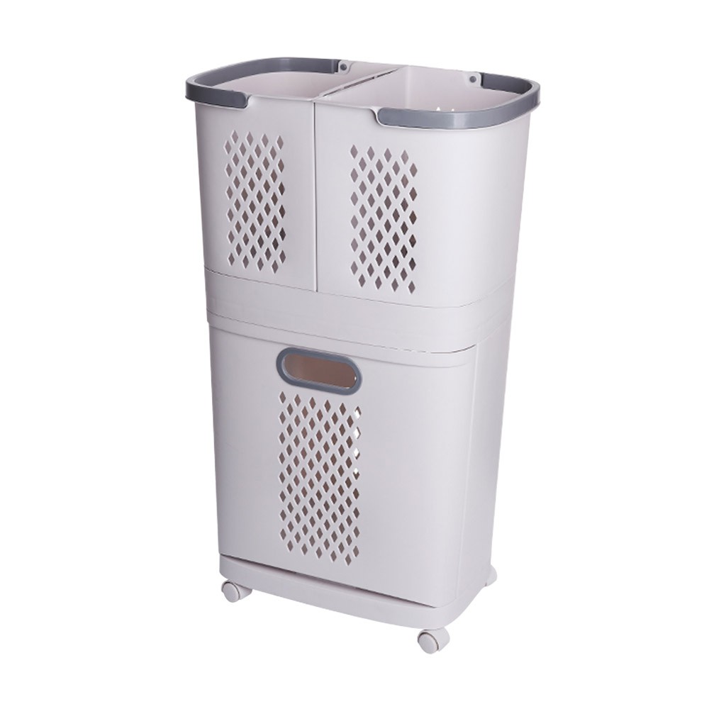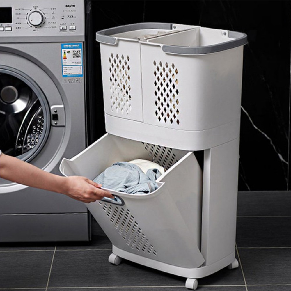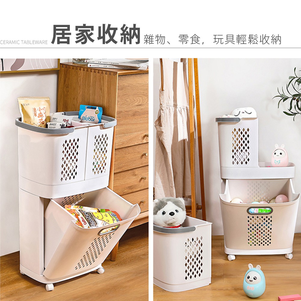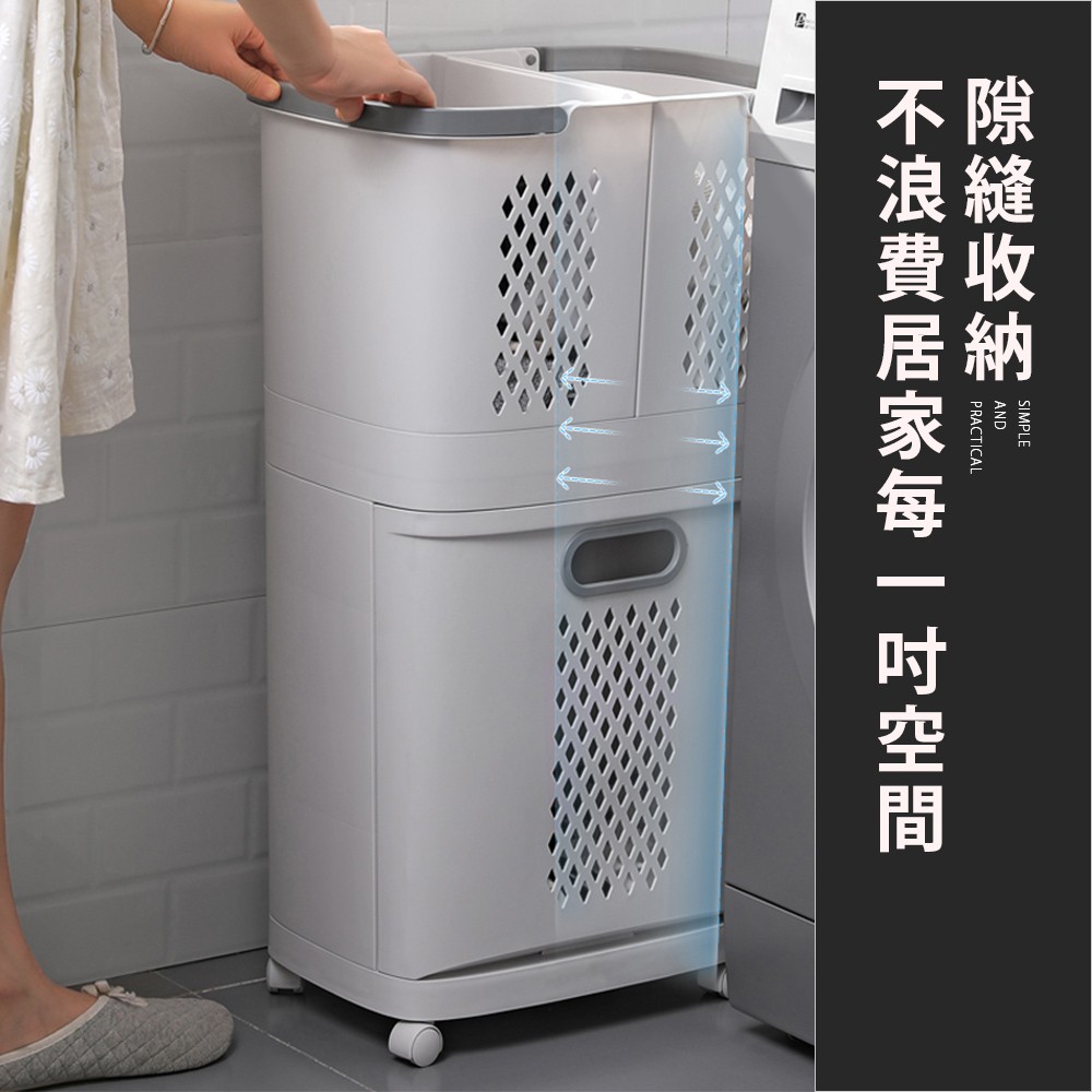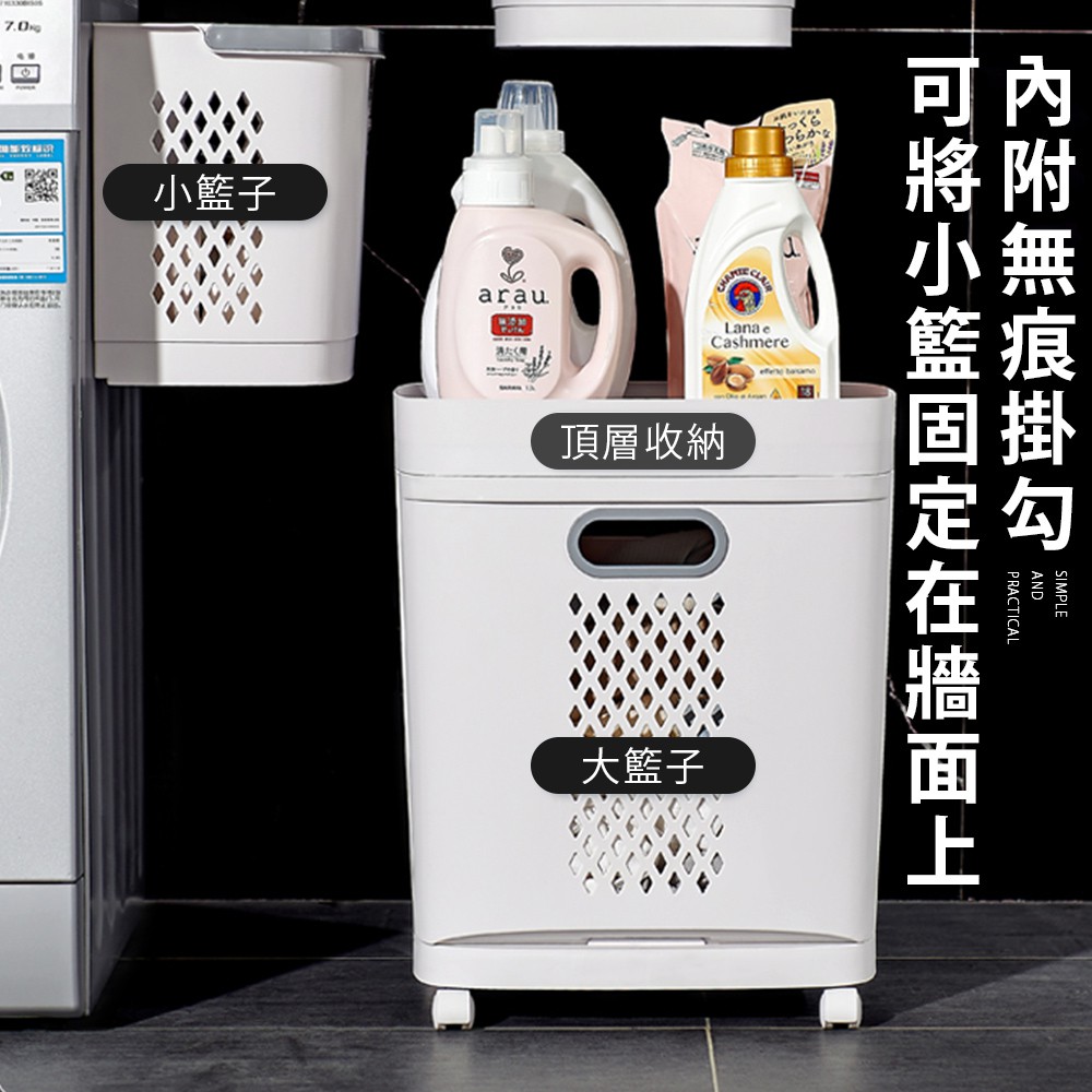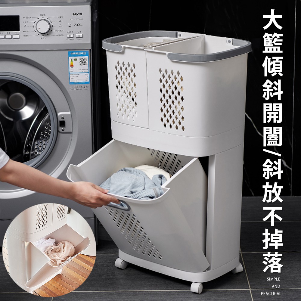 Mr.Box 日式分離式雙層髒衣籃 洗衣籃 附輪 附無痕掛勾x2 收納籃 收納 廠商直送