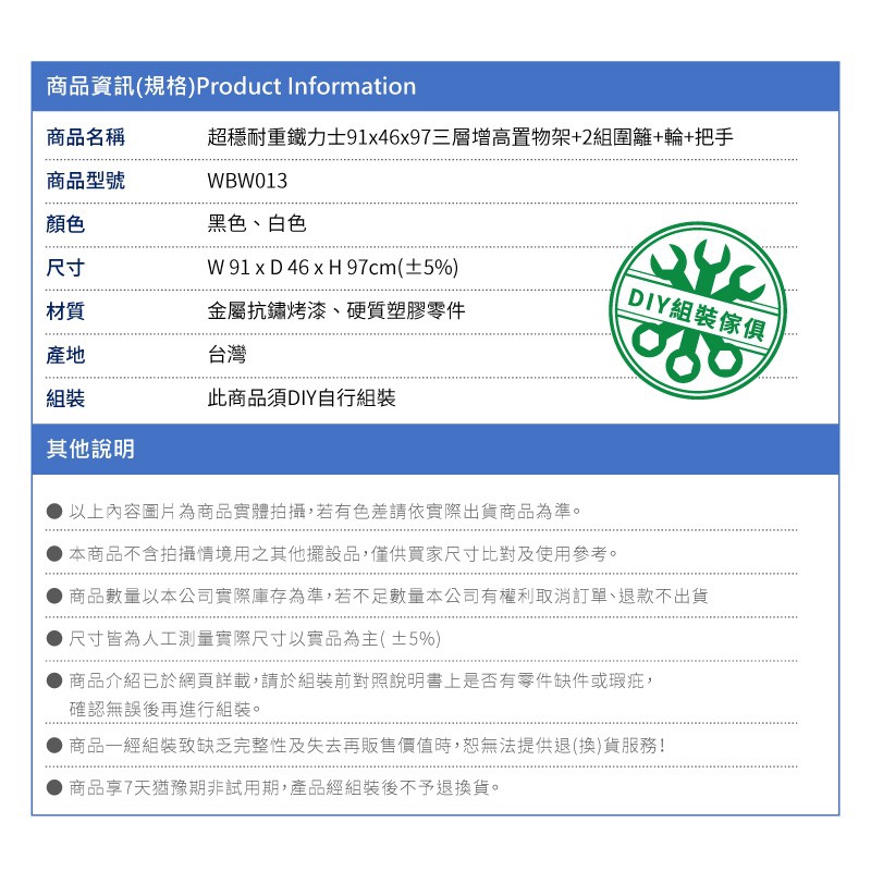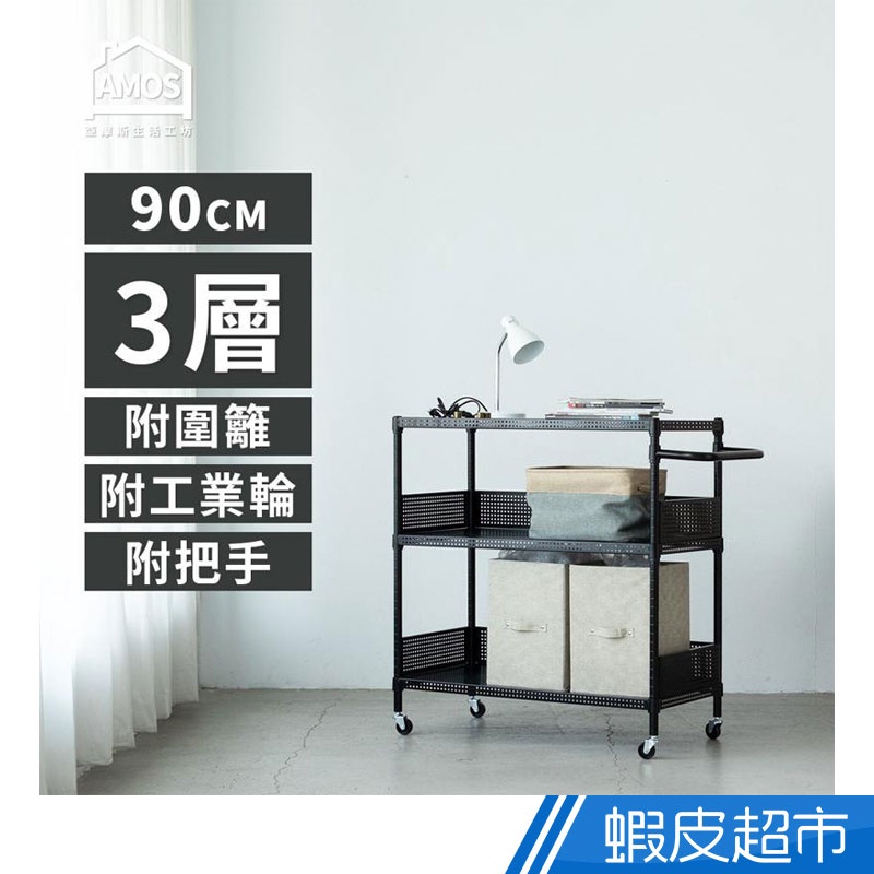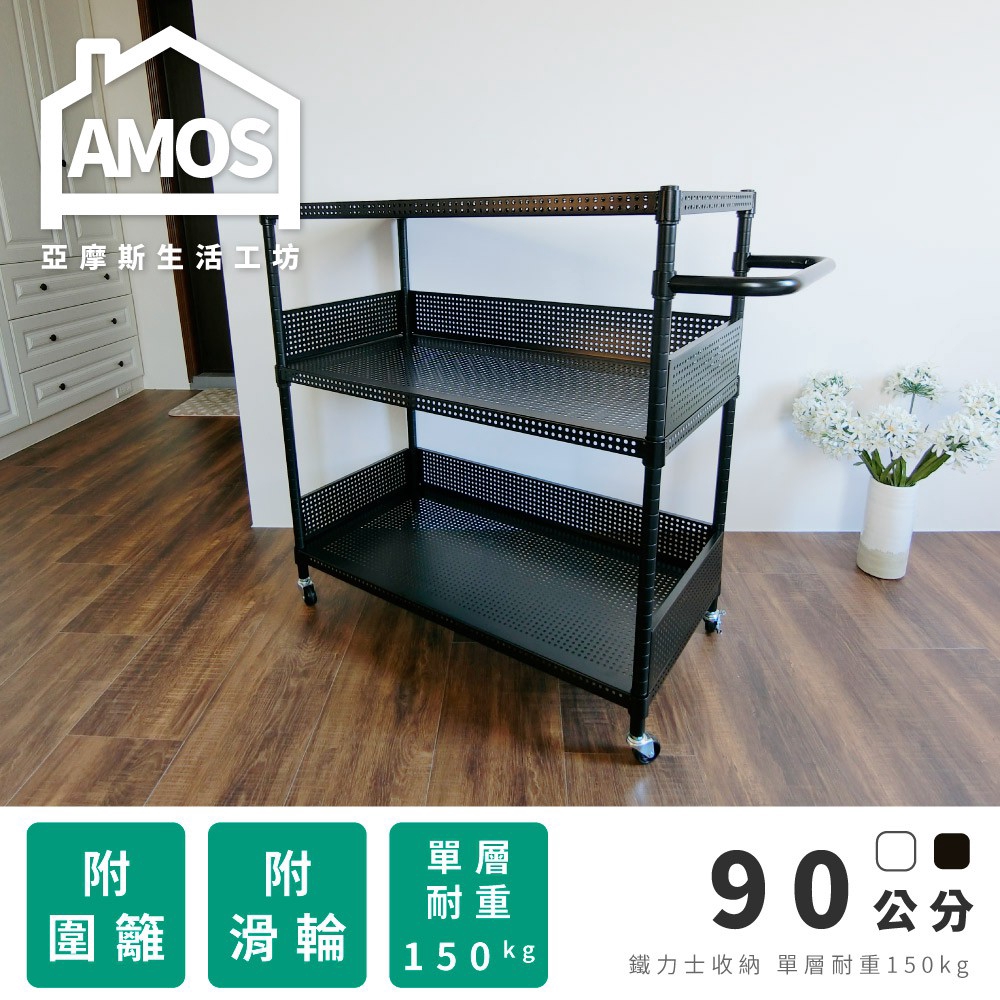 Amos 亞摩斯 超穩耐重鐵力士推車90cm三層置物架+2組圍欄擋板+輪+把手 WBW013 現貨 廠商直送