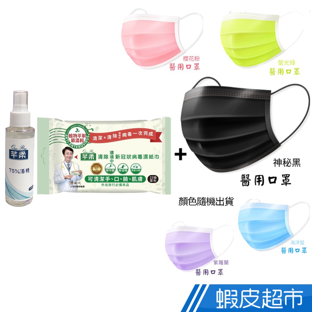 防疫隨身組(星安醫療口罩50入 顏色隨機+芊柔清除新冠狀病毒濕紙巾15抽+75%酒精乾洗手100ml) 蝦皮直送 現貨