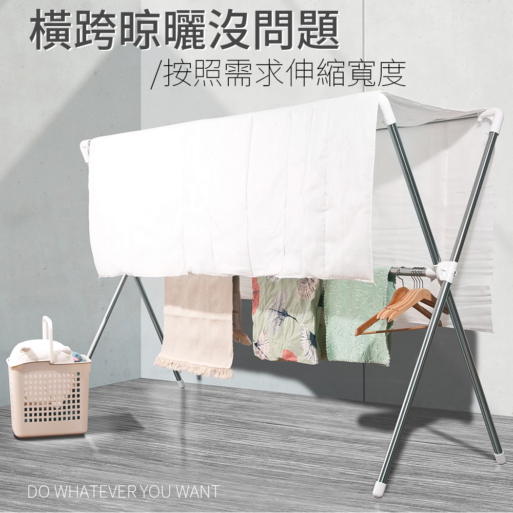 晴天媽咪 加長2.2M不鏽鋼X型伸縮曬衣架 晾曬 曬衣 衣物(贈10個防風掛勾) 廠商直送