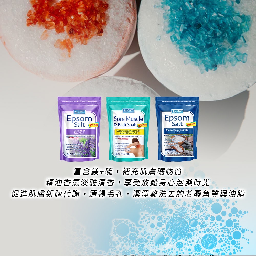 Lucky Super Soft沐浴鎂鹽 尤加利薄荷/薰衣草/無香精 19.2oz/544g 蝦皮直送 現貨