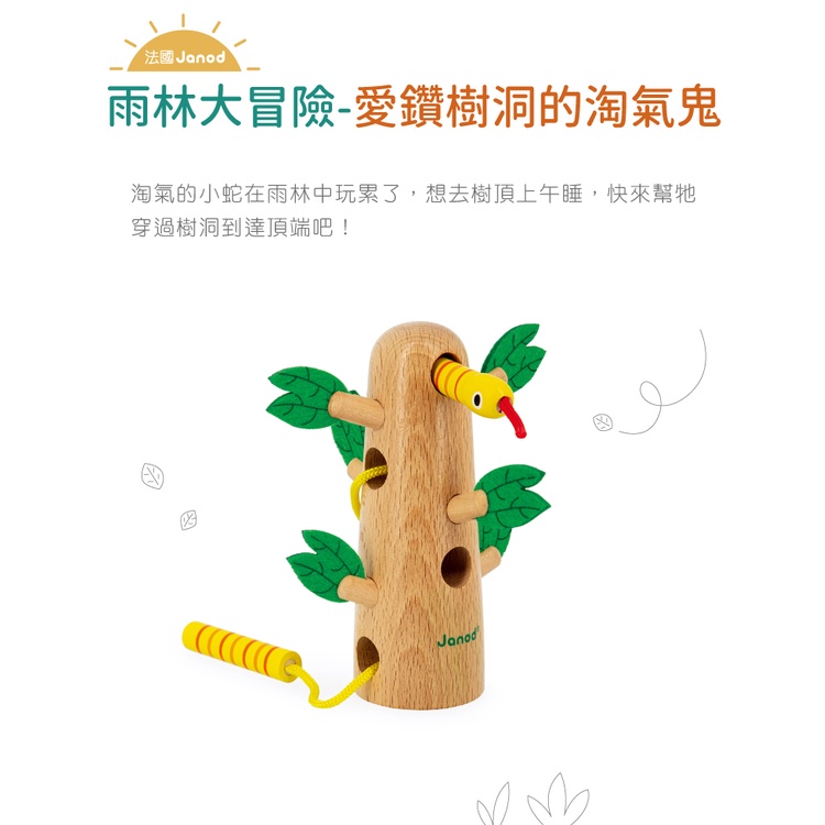 Janod 鑽樹洞 穿繩遊戲 幼兒玩具 穿線玩具 蒙特梭利 手眼協調 官方旗艦