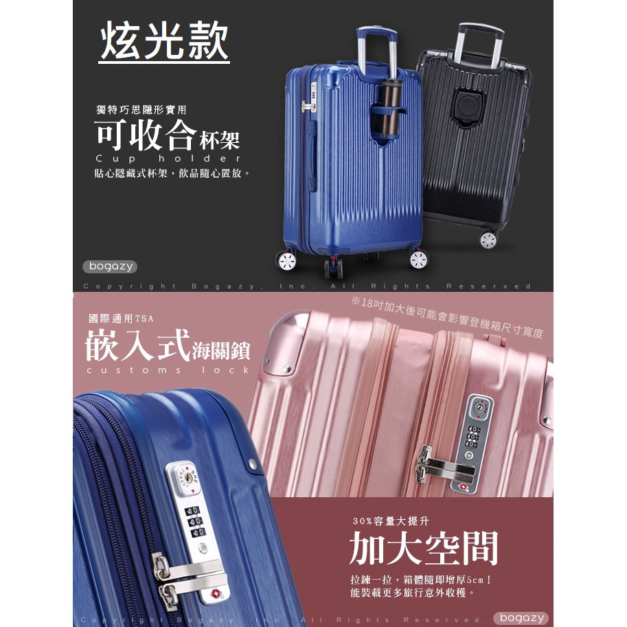 《Bogazy》19吋防爆拉鍊/可加大多功能行李箱登機箱