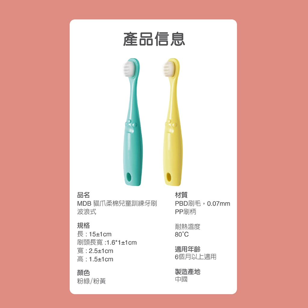 【Luveta】MDB 貓爪柔棉兒童訓練牙刷 (波浪式) 萬毛兒童牙刷 口腔清潔棒