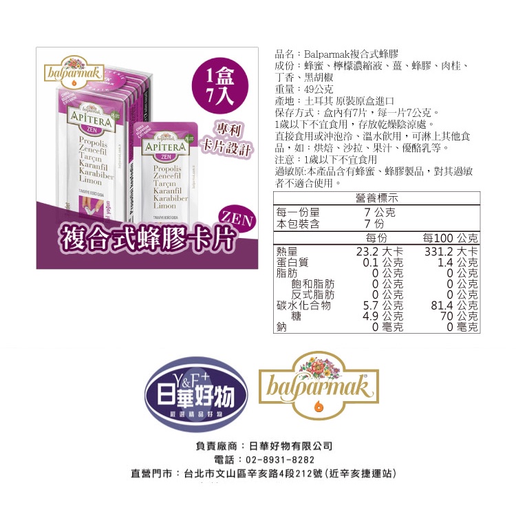 Balparmak 複合式蜂膠卡片一盒7片 效期11/24 專利卡片式設計 日華好物