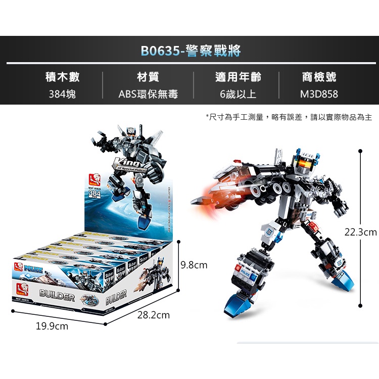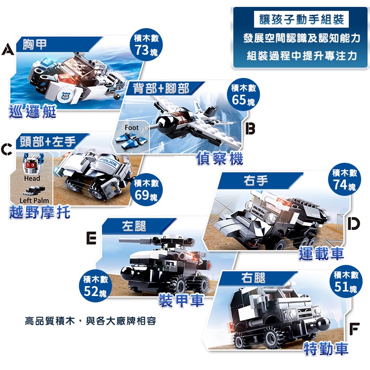 Sluban變形合體積木-警察戰將B0635(六合一) 日華好物