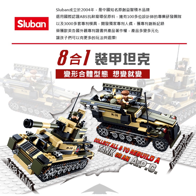Sluban變形合體積木-裝甲坦克B0588(八合一) 日華好物