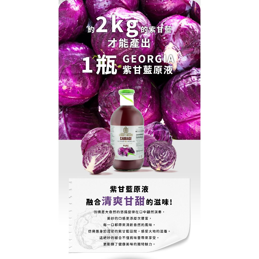 GEORGIA 紫甘藍原汁750ml 冷壓蔬果汁 非濃縮還原果汁(超取勿超過2瓶以上,店到家勿超過6瓶以上)