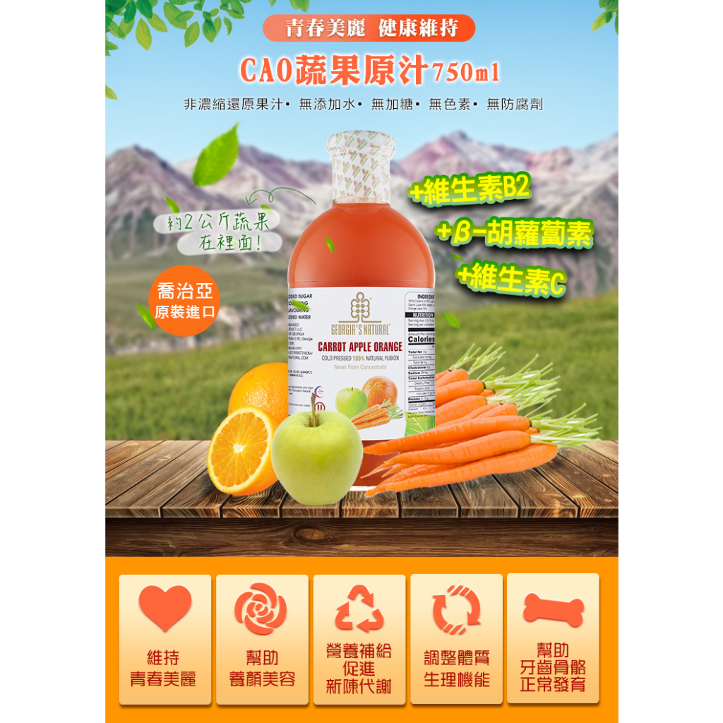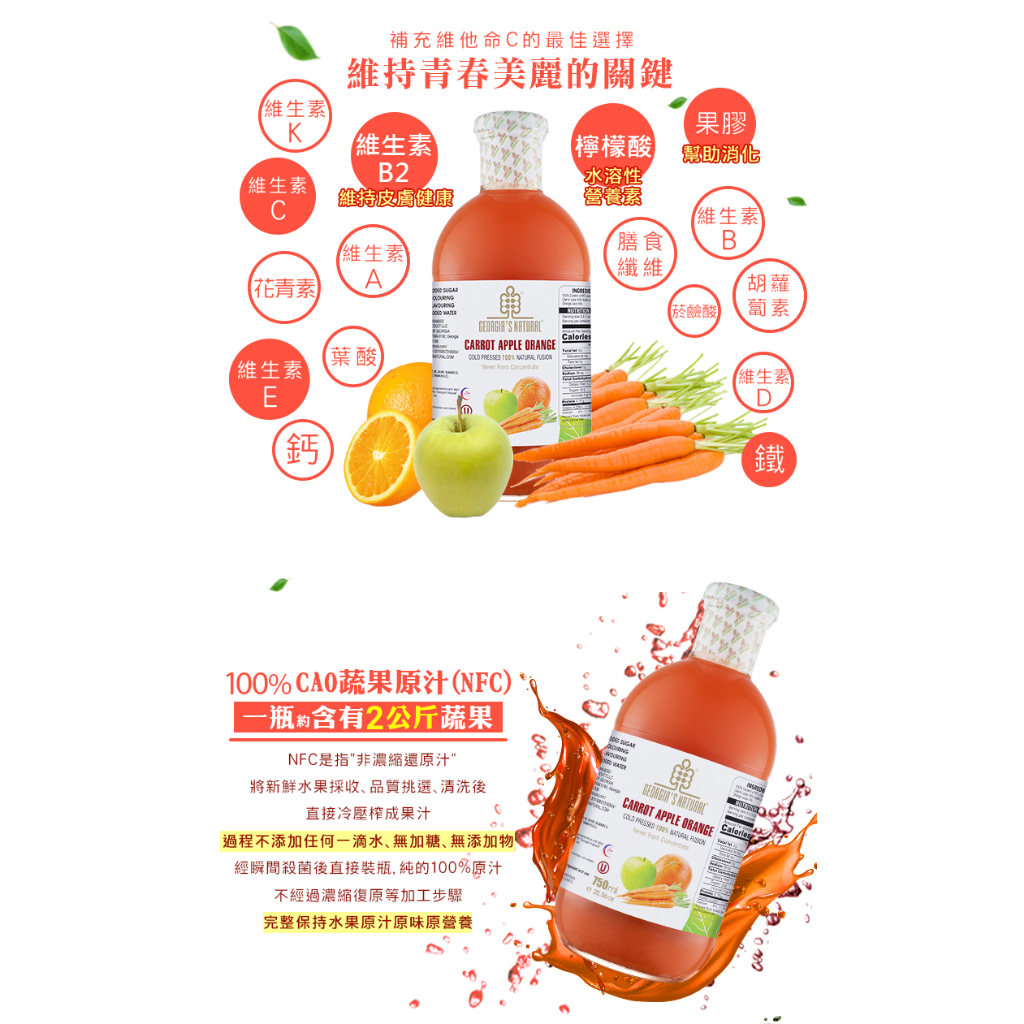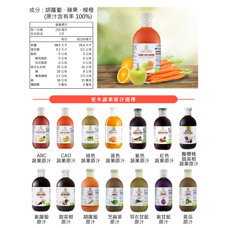 Georgia CAO蔬果原汁(750ml/瓶) 非濃縮還原蔬果汁(超取勿超過2瓶以上,店到家勿超過6瓶以上)