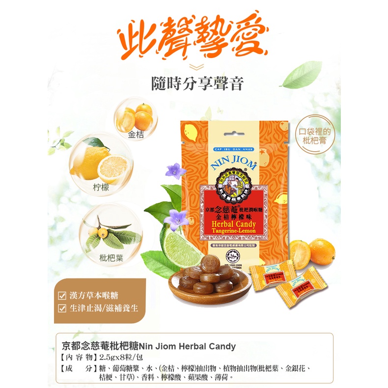 (含金銀花)【京都念慈菴】枇杷潤喉糖-金桔檸檬味(20g/包)