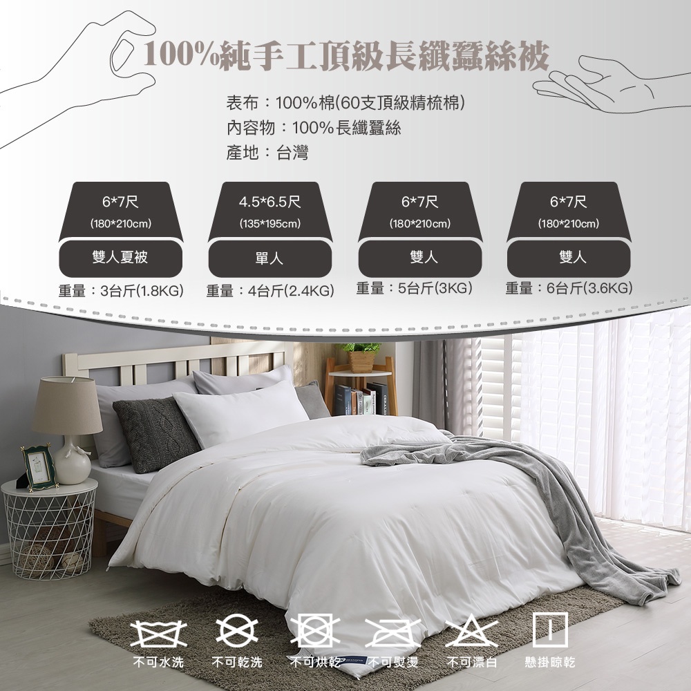 【岱思夢】100%頂級手工長纖純蠶絲被 附保證書 台灣製 帝王級桑蠶絲 60支精梳純棉布套 棉被 被芯 被胎 冬被 被子