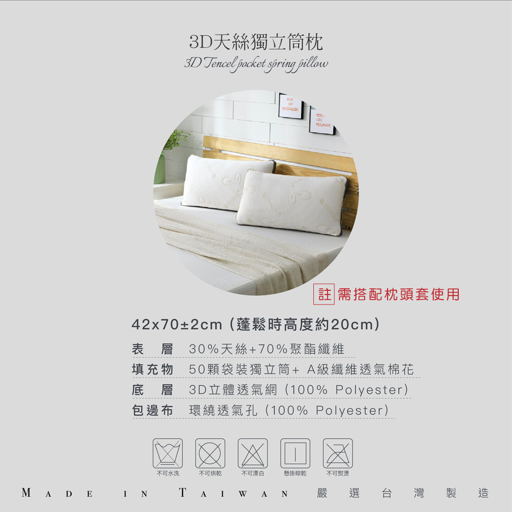 【岱思夢】3D天絲獨立筒枕 TENCEL 台灣製造 枕頭 枕心 [超取有出貨限制,詳請參閱內容說明]