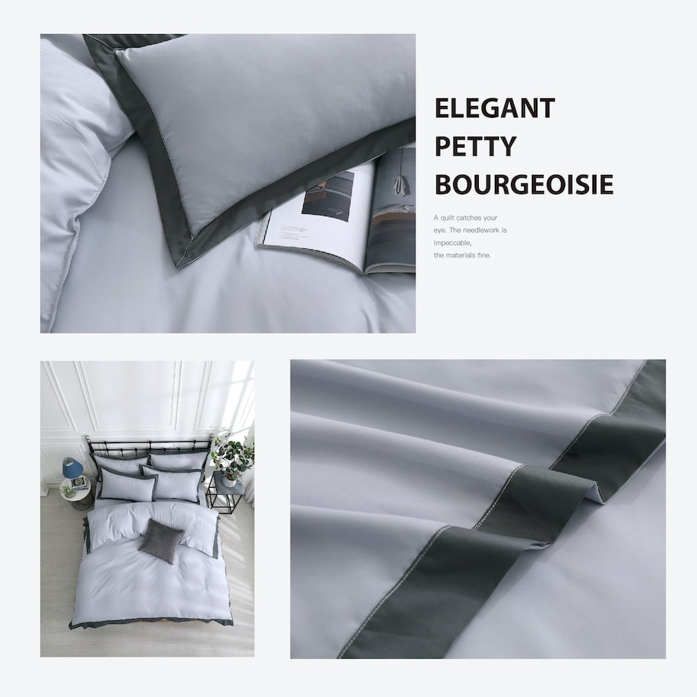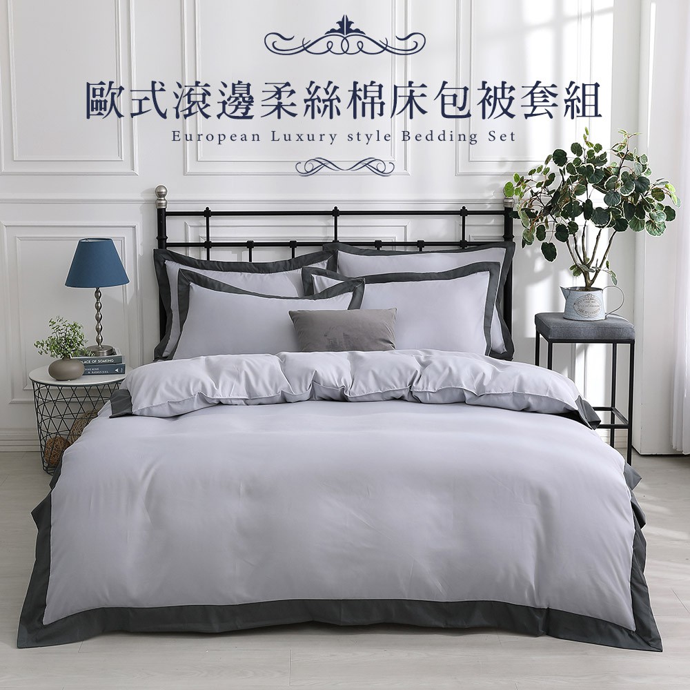 【岱思夢】歐式滾邊柔絲棉 床包被套組/兩用被床包組 單人/雙人/加大 台灣製造 典雅淺灰