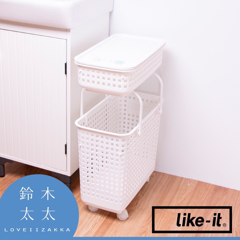 【like-it】夾縫疊疊洗衣提籃(L)附輪