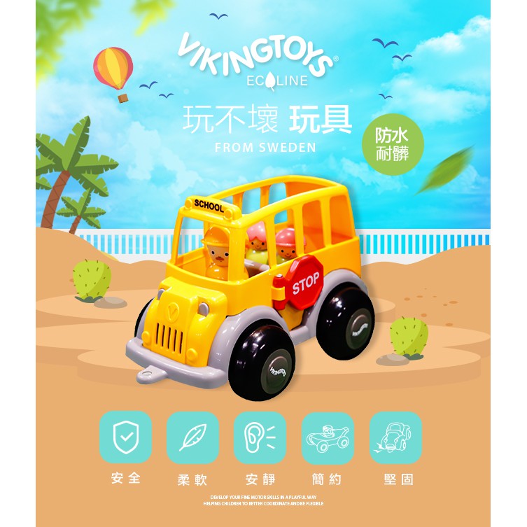 瑞典Viking toys維京玩具-快樂校園小巴士(含3隻人偶)21cm 兒童玩具 玩具車 幼兒玩具 現貨