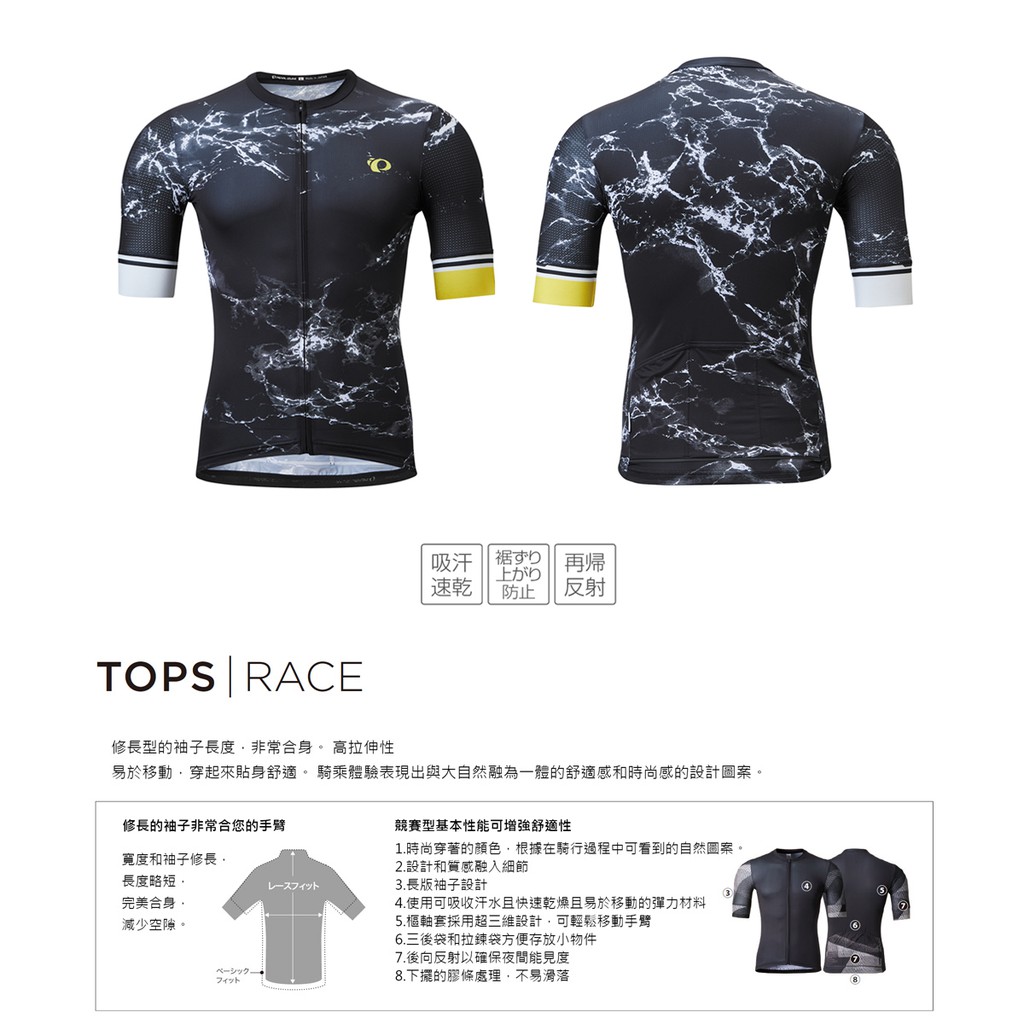 【Pearl izumi】IGNITE 321-B-17 競賽款 合身款 男款短袖車衣 黑底大理石紋