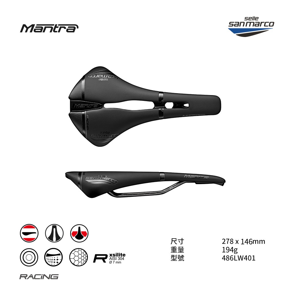 【Selle San marco】坐墊 MANTRA OPEN-FIT RACING 寬 黑/黑 486LW401