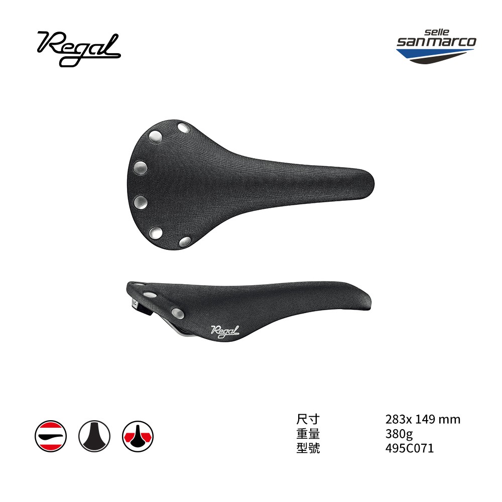 【Selle San marco】坐墊 REGAL FULL-FIT 黑/銀鉚釘 WOVEN MICROFEEL 49