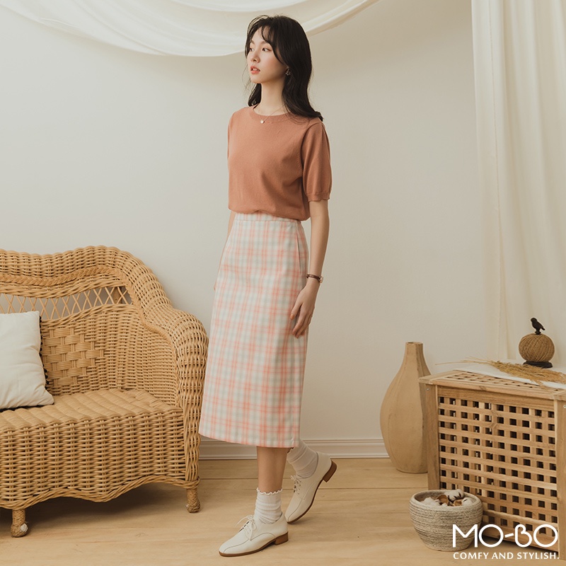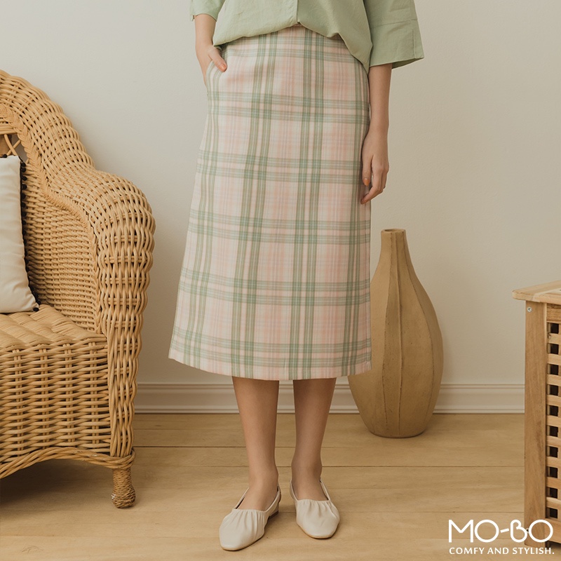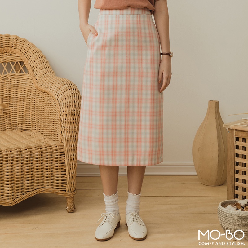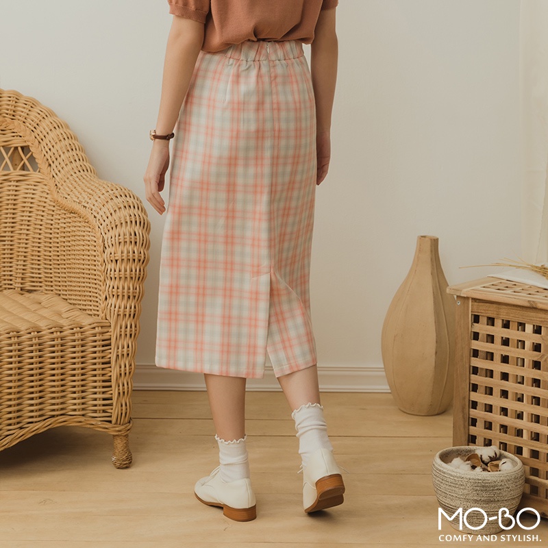 MOBO 格子控女生最愛後腰鬆緊窄裙 / 08070085