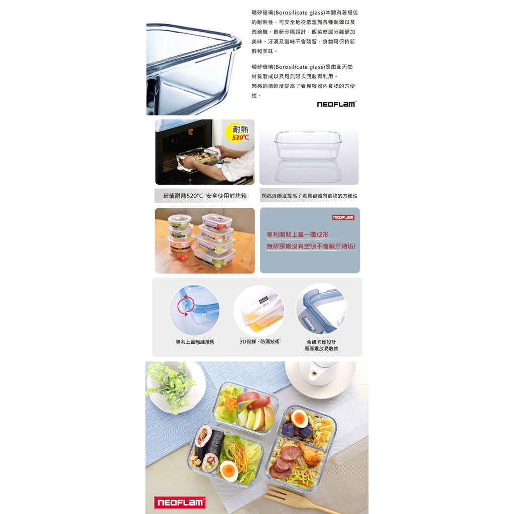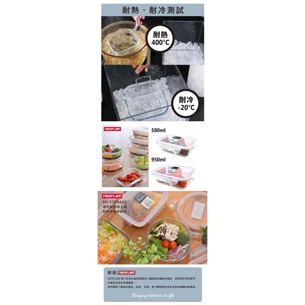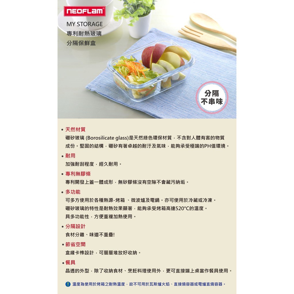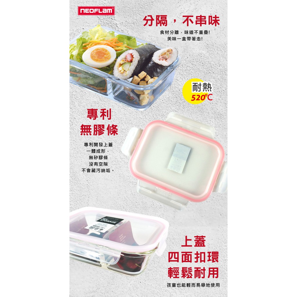 NEOFLAM 專利耐熱玻璃分隔保鮮盒長型-580ml-台灣原廠公司貨