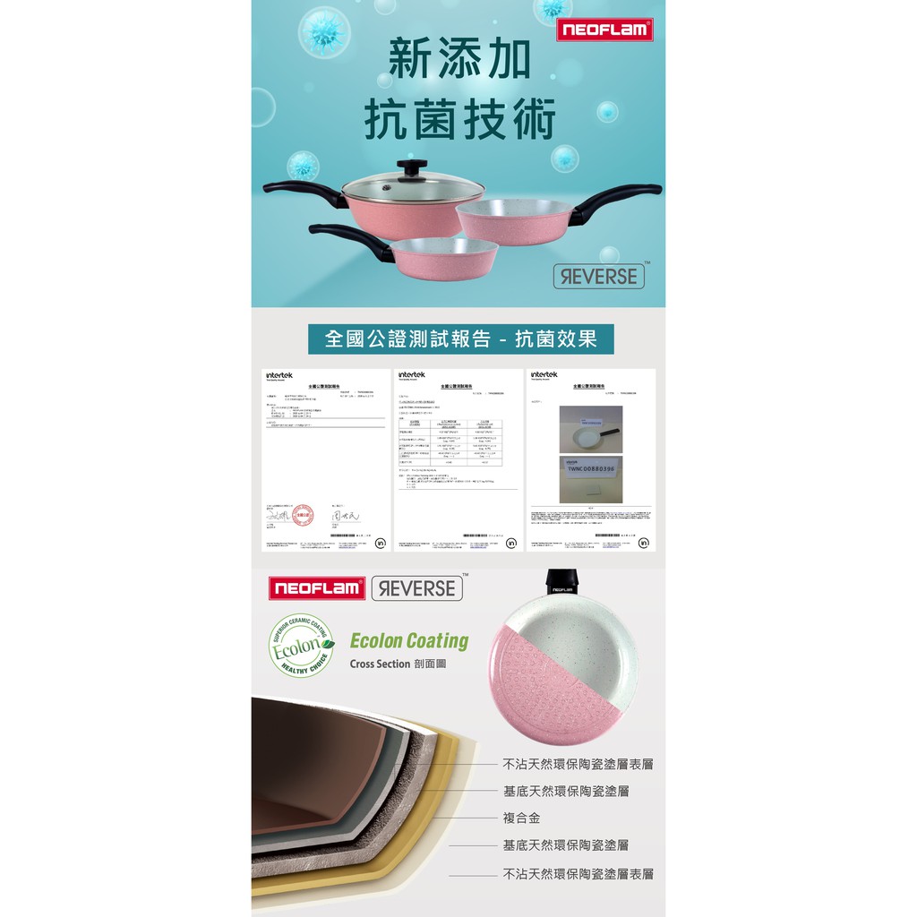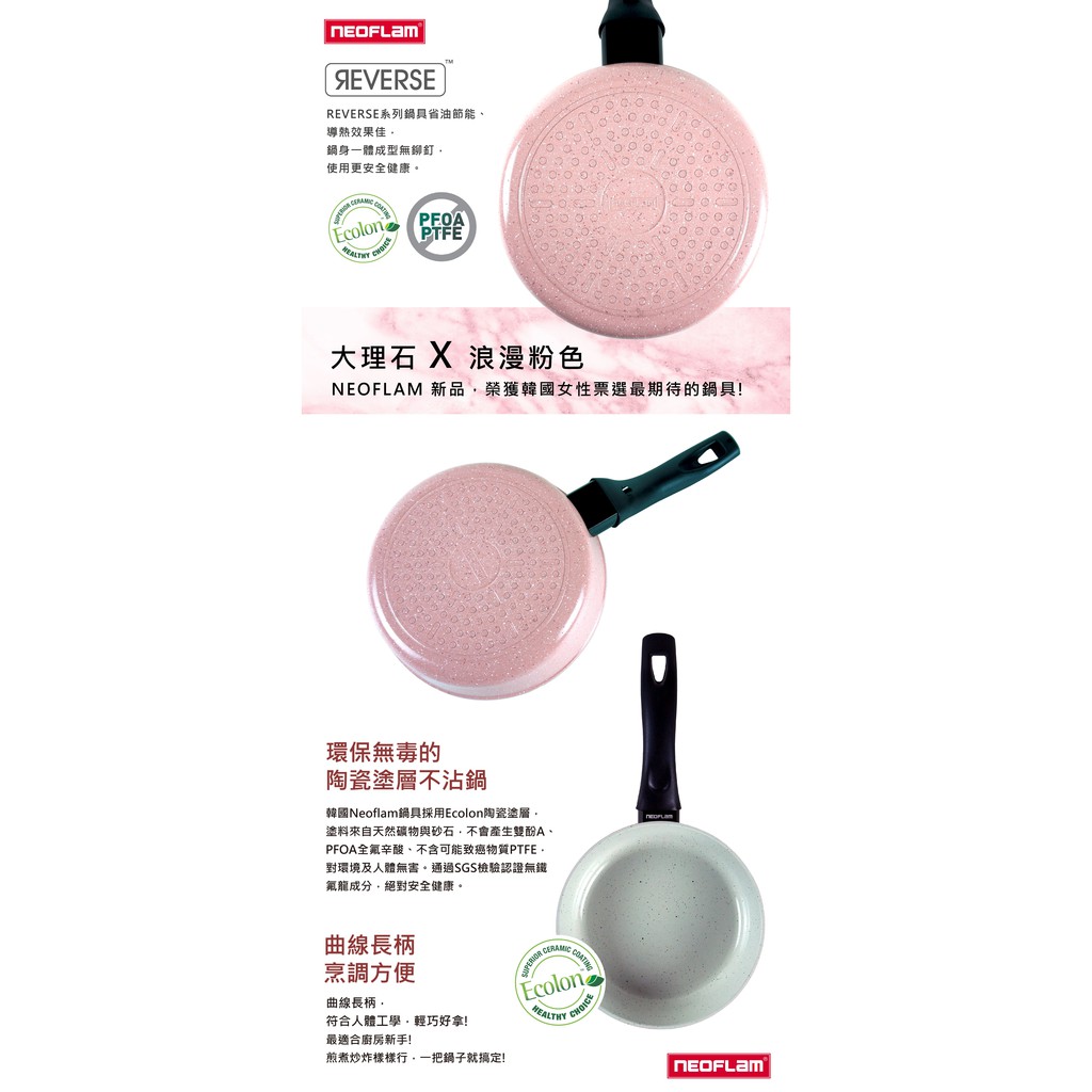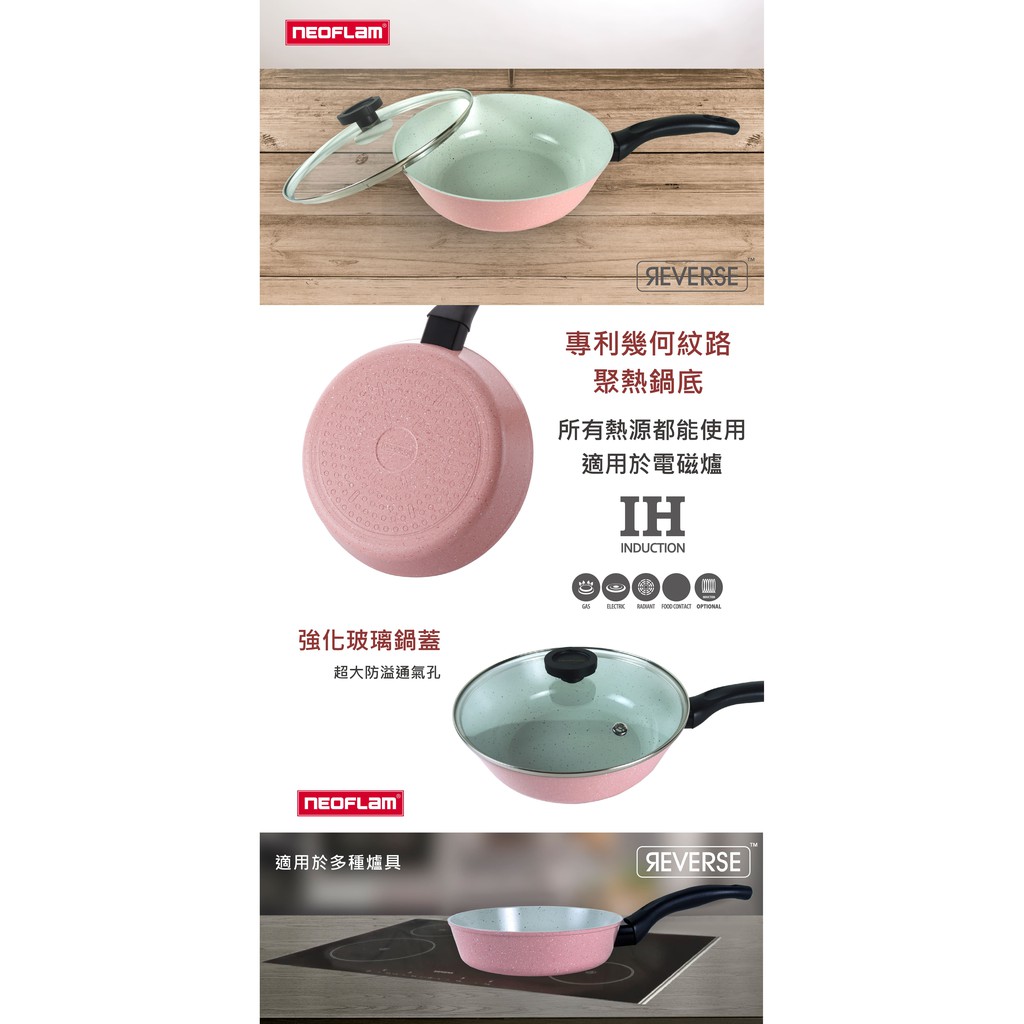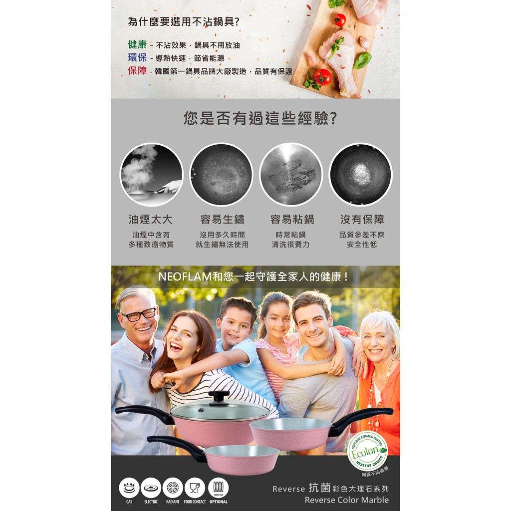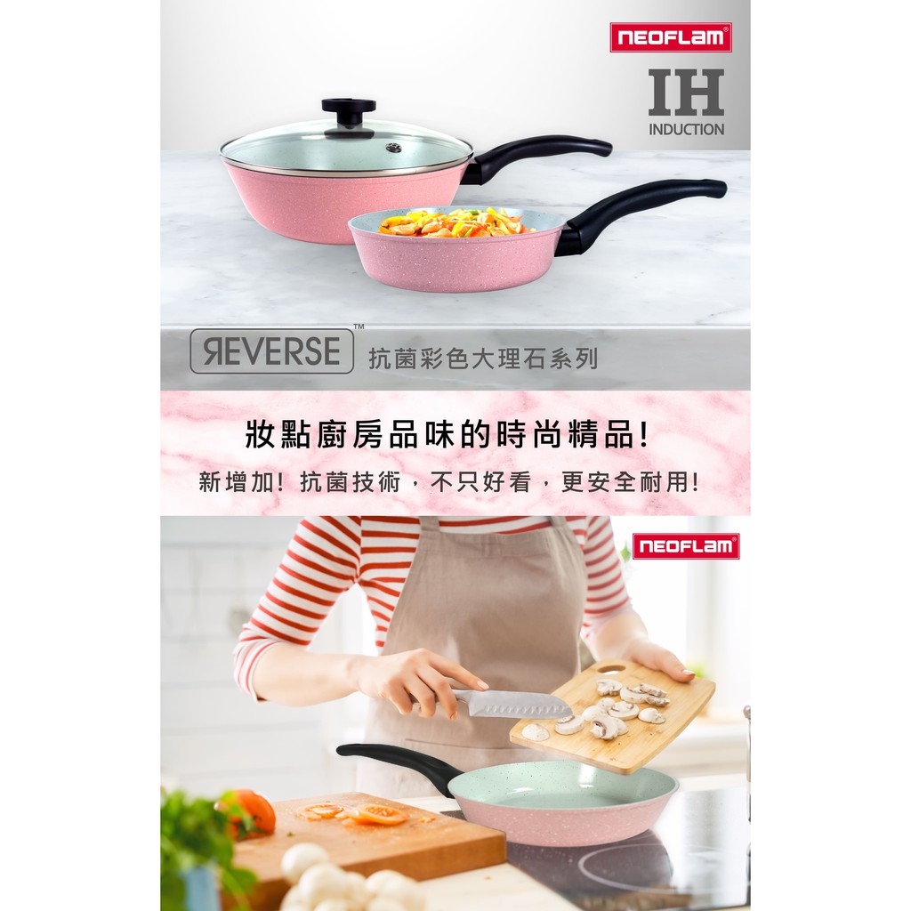 NEOFLAM Reverse抗菌彩色大理石系列平底鍋28cm(電磁底)-粉色內白大理石-台灣原廠公司貨