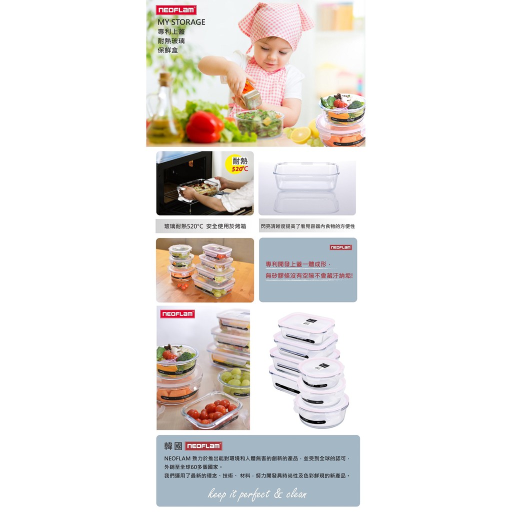 NEOFLAM 專利無膠條圓形保鮮盒4件組(粉色)-台灣原廠公司貨