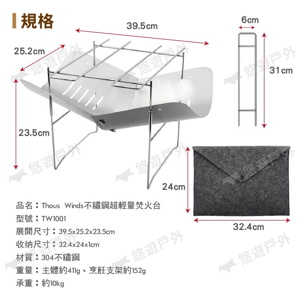 【Thous Winds】304不鏽鋼超輕量焚火台 TW1001 迷你燒烤 烤肉架 取暖 戶外 野炊 露營 悠遊戶外