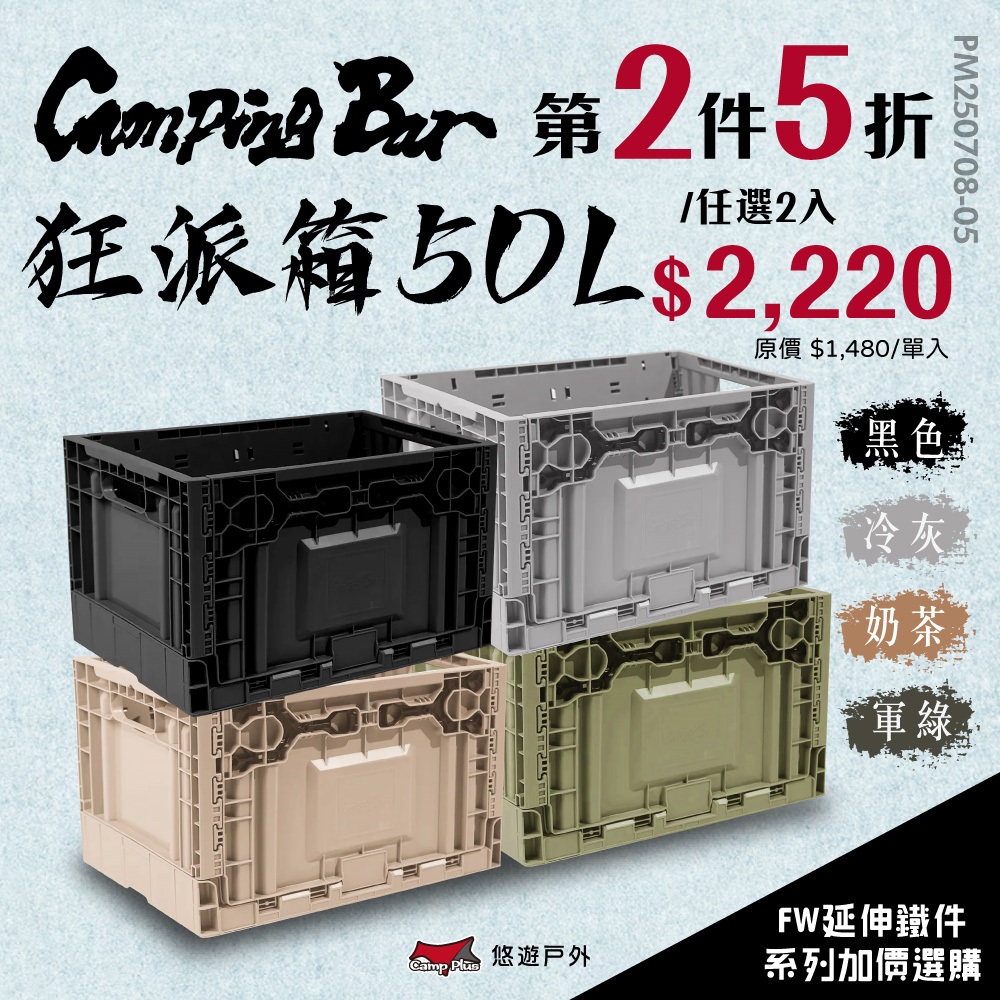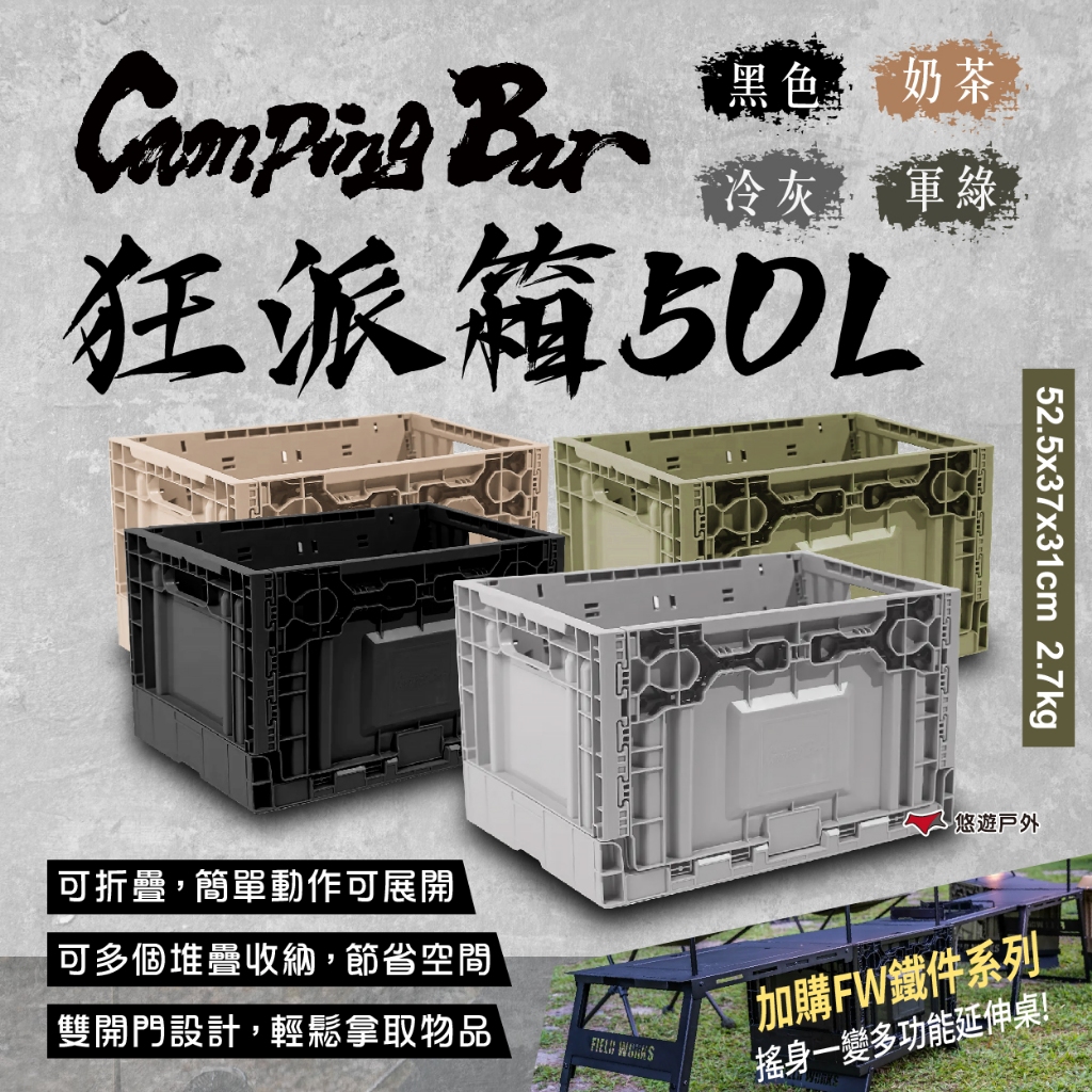 【CampingBar】狂派箱 50L 四色《第2件半價》折疊箱 側開收納箱 整理箱 儲物箱 可堆疊 露營 悠遊戶外