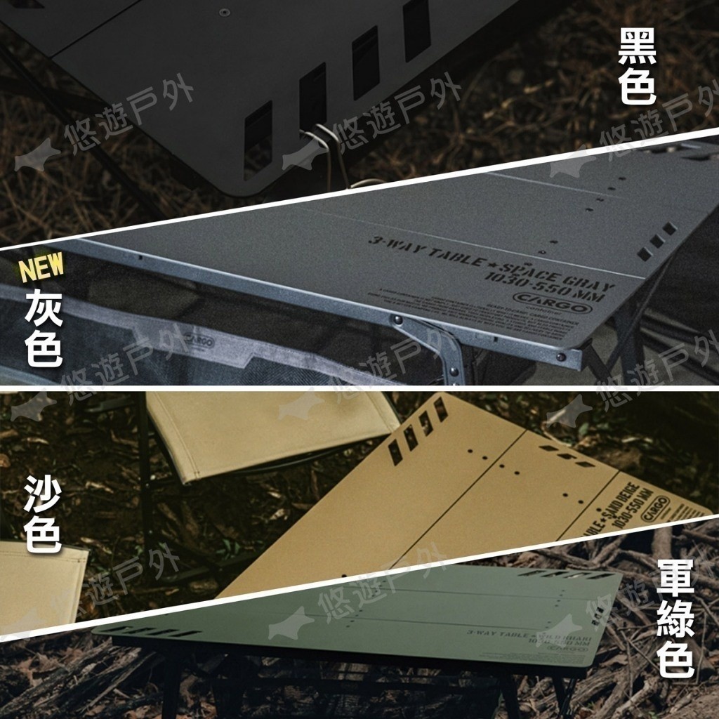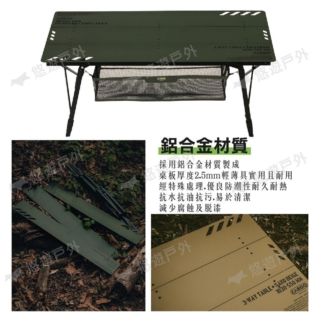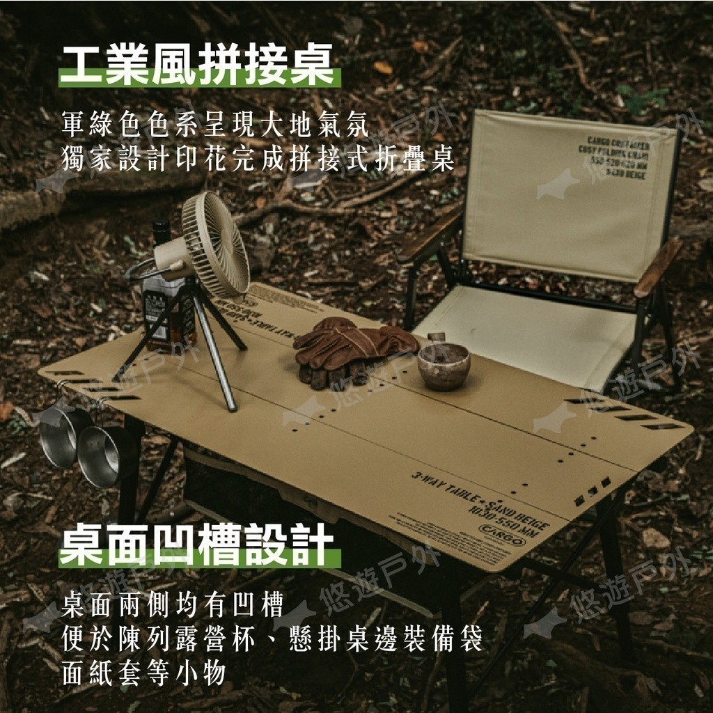 【CARGO】工業風拼接式折疊桌 黑/綠/沙/灰 可調節高度 置物網袋 附收納袋 便攜桌 野營 露營 悠遊戶外