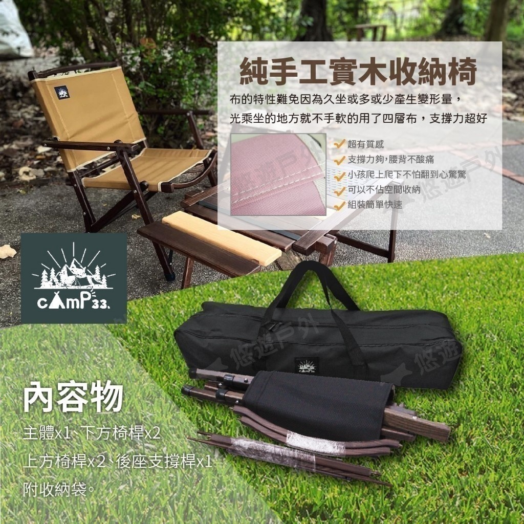 【cAmP33】純手工實木收納椅 二代 多地迷彩 2色 露營椅 折疊椅 導演椅 木椅 野餐 釣魚 露營 台灣製 悠遊戶外