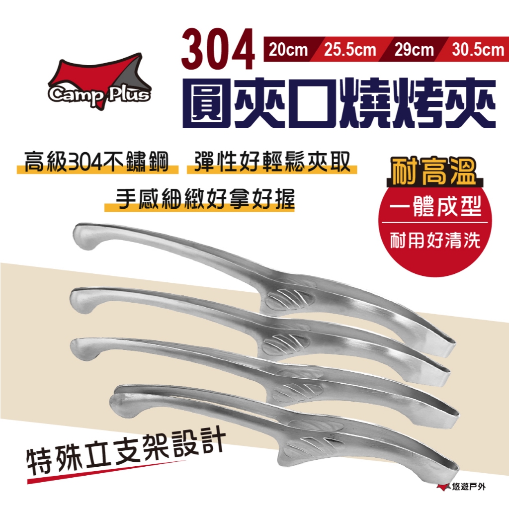 【Camp Plus】304圓夾口燒烤夾 不鏽鋼夾 烤肉夾 人體工學 夾子 聚餐 廚房 野炊 露營 悠遊戶外