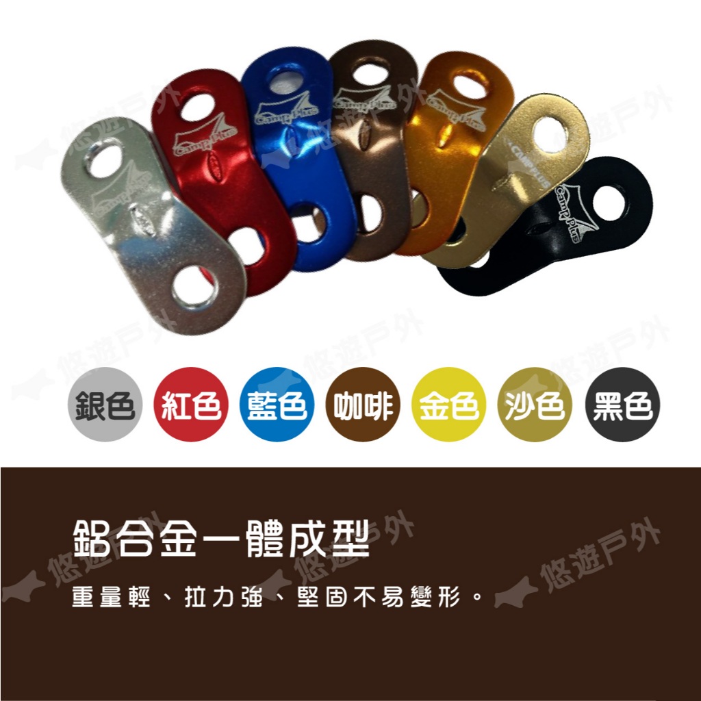 【Camp Plus】鋁合金 雙孔營繩調節片 七色可選 風繩調節片 露營 風繩扣 調節片(買10送1)悠遊戶外