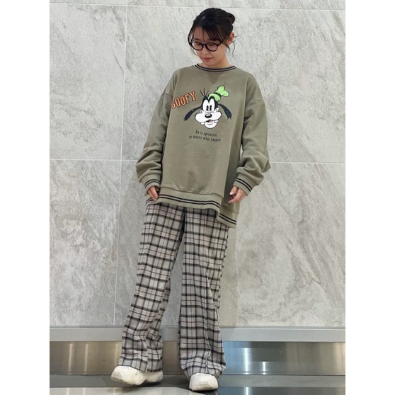 earth music&ecology 定番格紋圖案剪裁寬褲(1D21L0F0200)