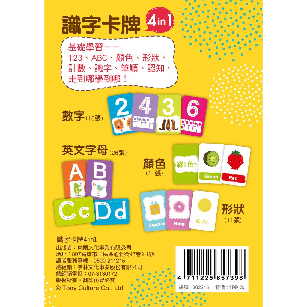 【東雨文化】識字卡牌 4in1-數字、英文字母、顏色、形狀