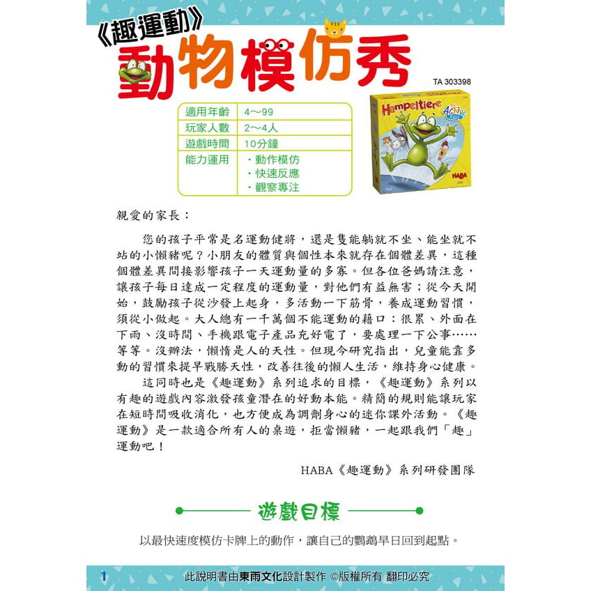 【HABA 德國桌遊/東雨文化】趣運動:動物模仿秀—Hampeltiere