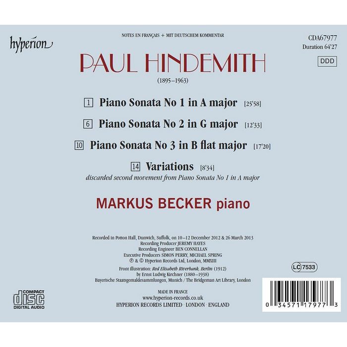 亨德密特 鋼琴奏鳴曲 馬庫斯貝克 Markus Becker Hindemith Sonatas CDA67977