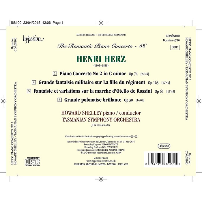 浪漫鋼琴協奏曲66 赫茲 薛利 Romantic Piano Concerto Shelly Herz CDA68100