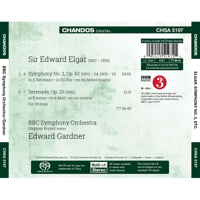 艾爾加 第2號交響曲 弦樂小夜曲 加德納 Gardner Elgar Symphony No 2 CHSA5197