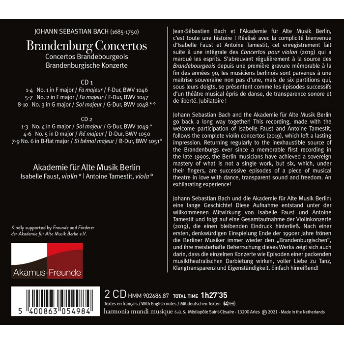 巴哈 布蘭登堡協奏曲 佛斯特 塔梅斯提 Bach Brandenburg Concertos HMM90268687