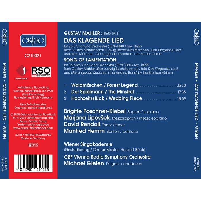 馬勒 悲嘆之歌 吉倫 指揮 Gielen Mahler Das Klagende Lied C210021