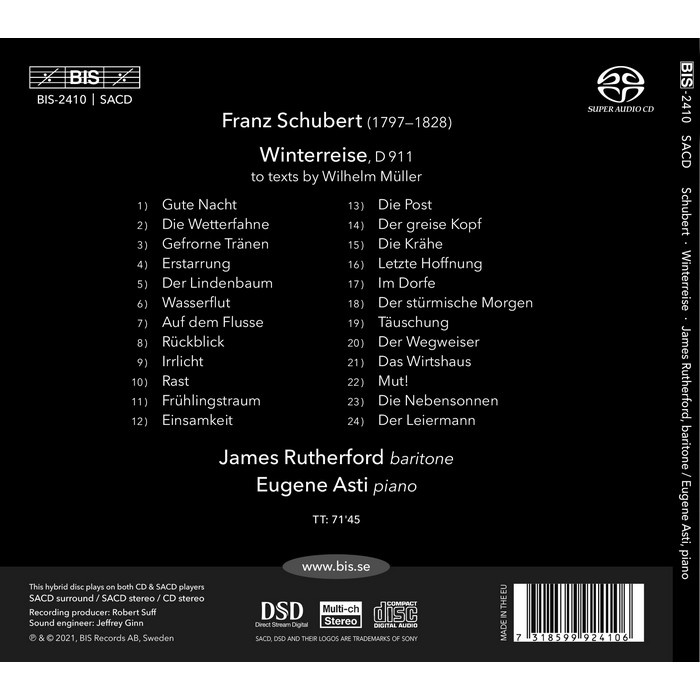舒伯特 聯篇歌曲 冬之旅 拉塞福 Rutherford Schubert Winterreise CD2410SA