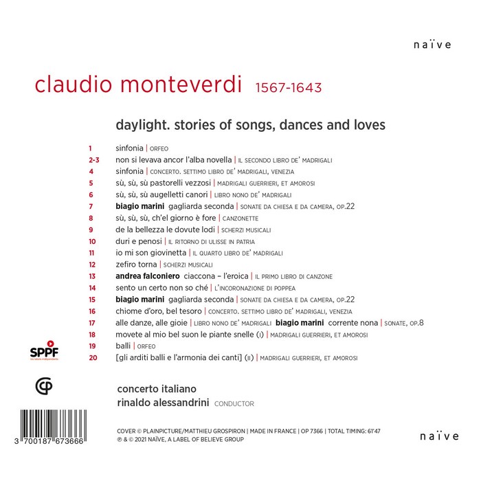 蒙台威爾第 日光 歌曲 舞蹈和愛情故事 Monteverdi Daylight OP7366
