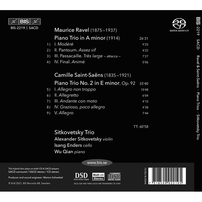 拉威爾 聖桑 鋼琴三重奏 西特柯維茲基三重奏 Ravel Saint Saens Piano Trio SACD2219
